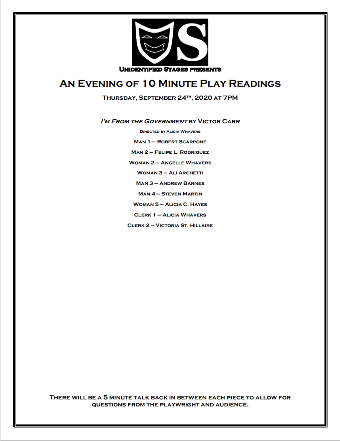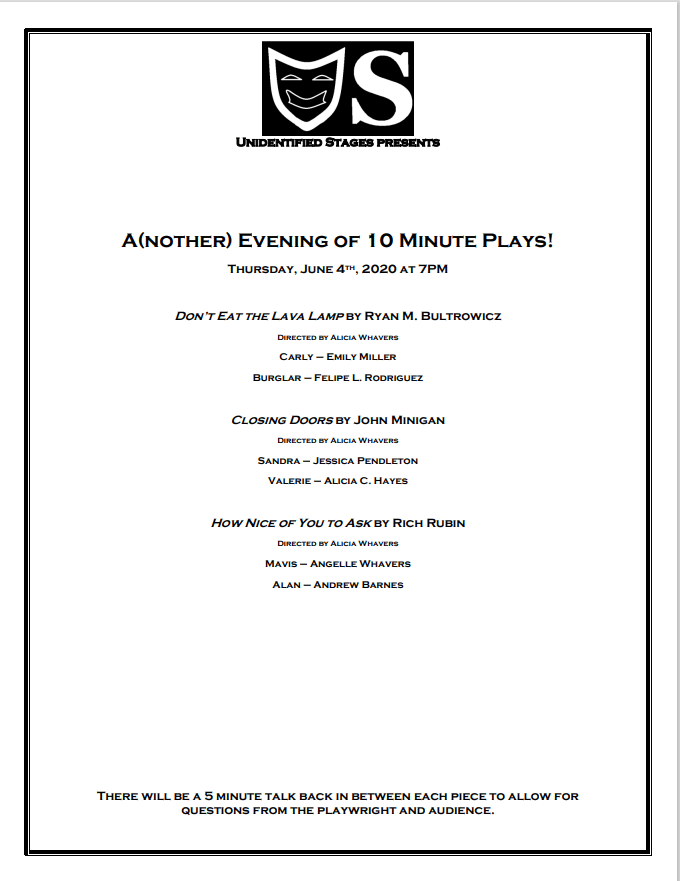 Come see a production of original pieces written by members of both companies!